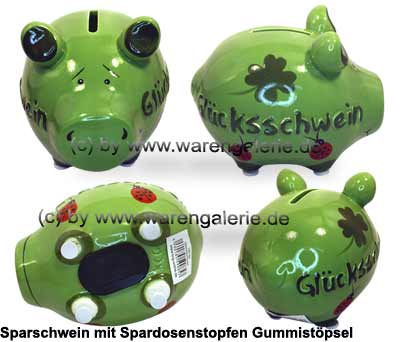 In den Sparschweinen aus Keramik, ist ein ovaler Spardosenstopfen eingesetzt welcher als Ersatzstopfen im Shop auch einzeln angeboten wird!