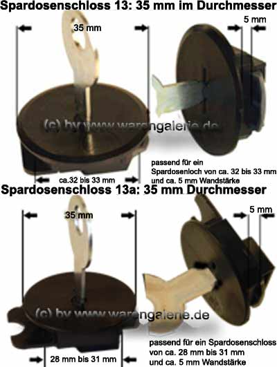 Spardosenschloss Set 7: 35mm Schlösser 2 Stück Maße: Ø= 35 mm