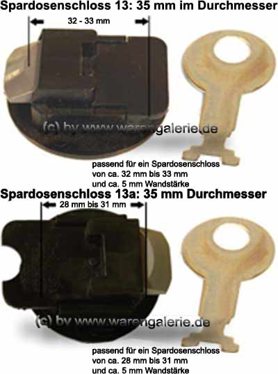 für Lochdurchmesser von 28 mm - 33 mm Ø Spardosenschloss Set 7: 35mm Ø Kunststoff mit Metall- Spardosenschlüssel